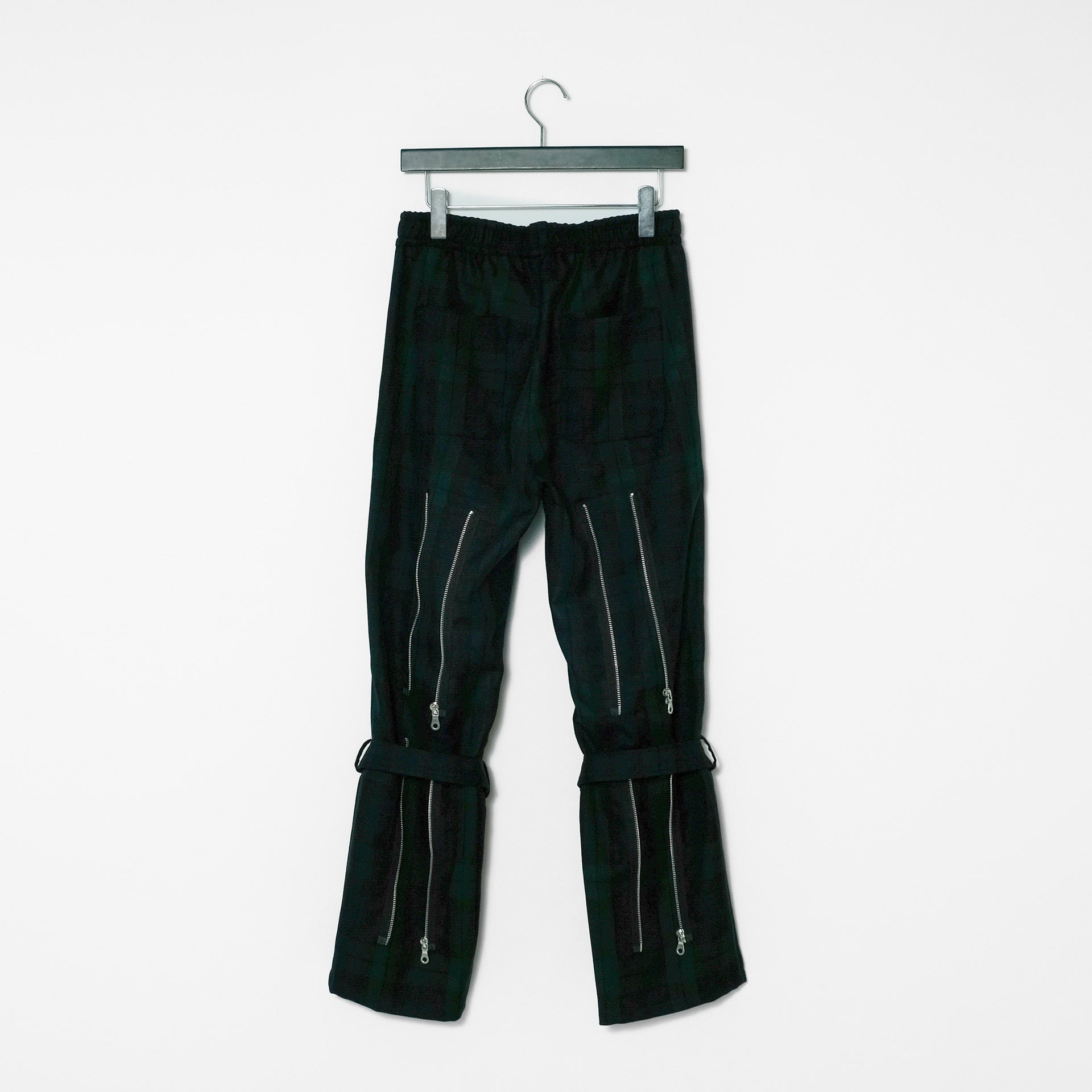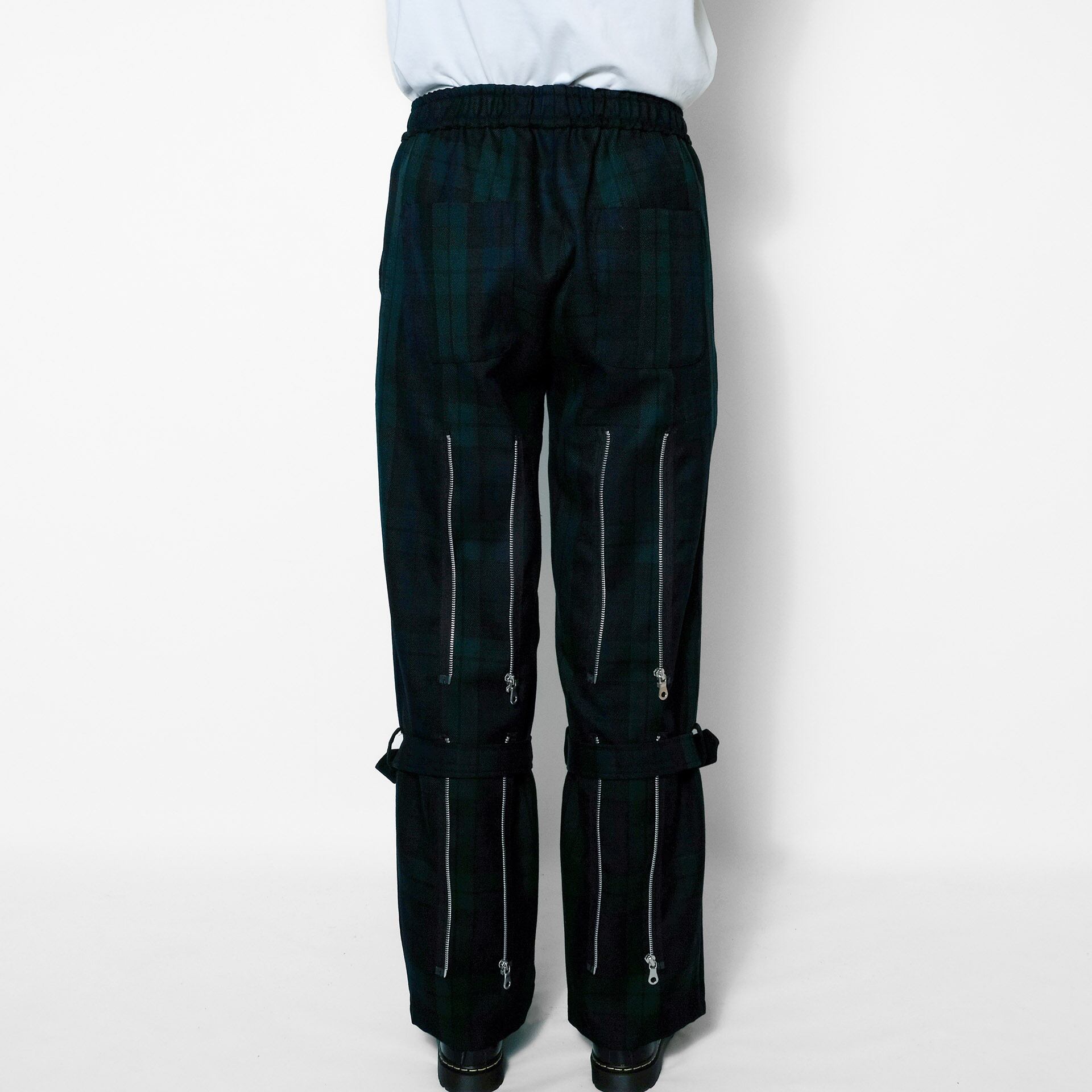 両脚後ろ側に4本のジップファスナーを大胆に配置。