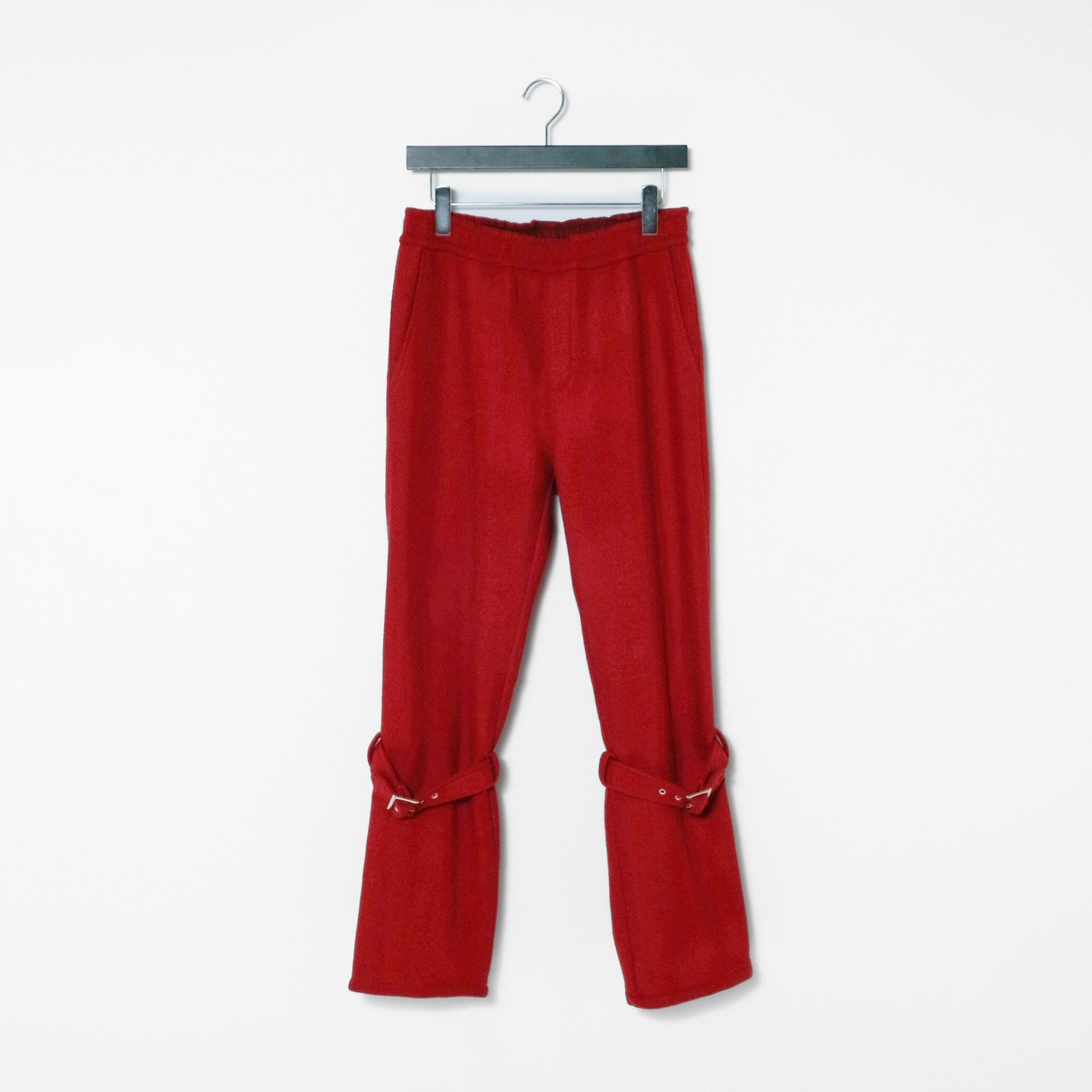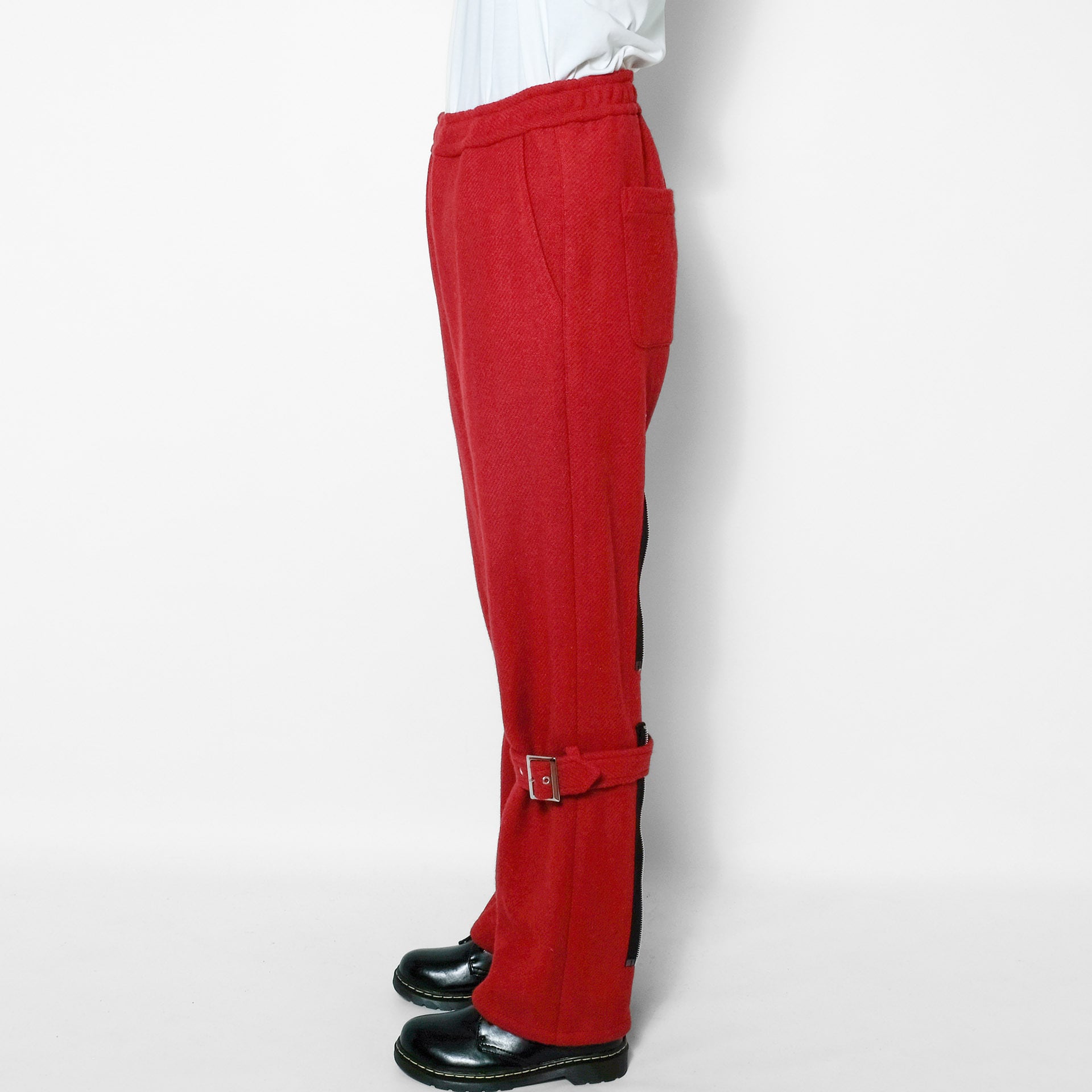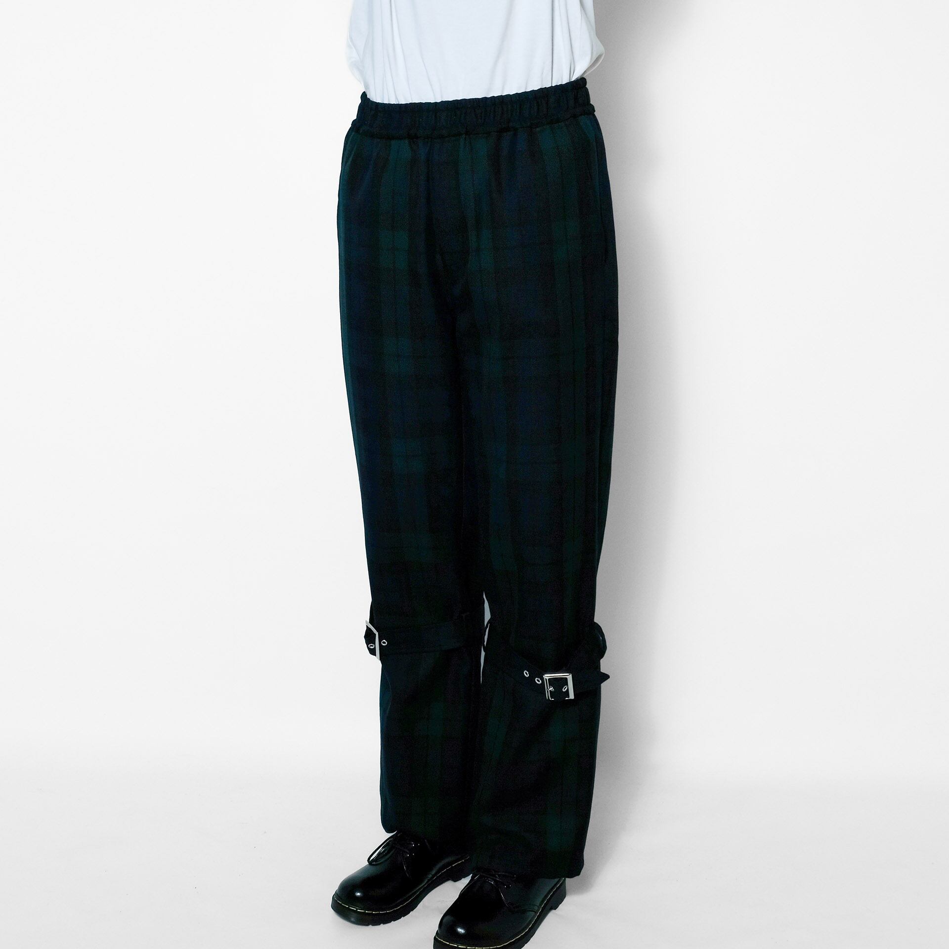 ロックテイストが際立つデザインが魅力のボンテージパンツ。