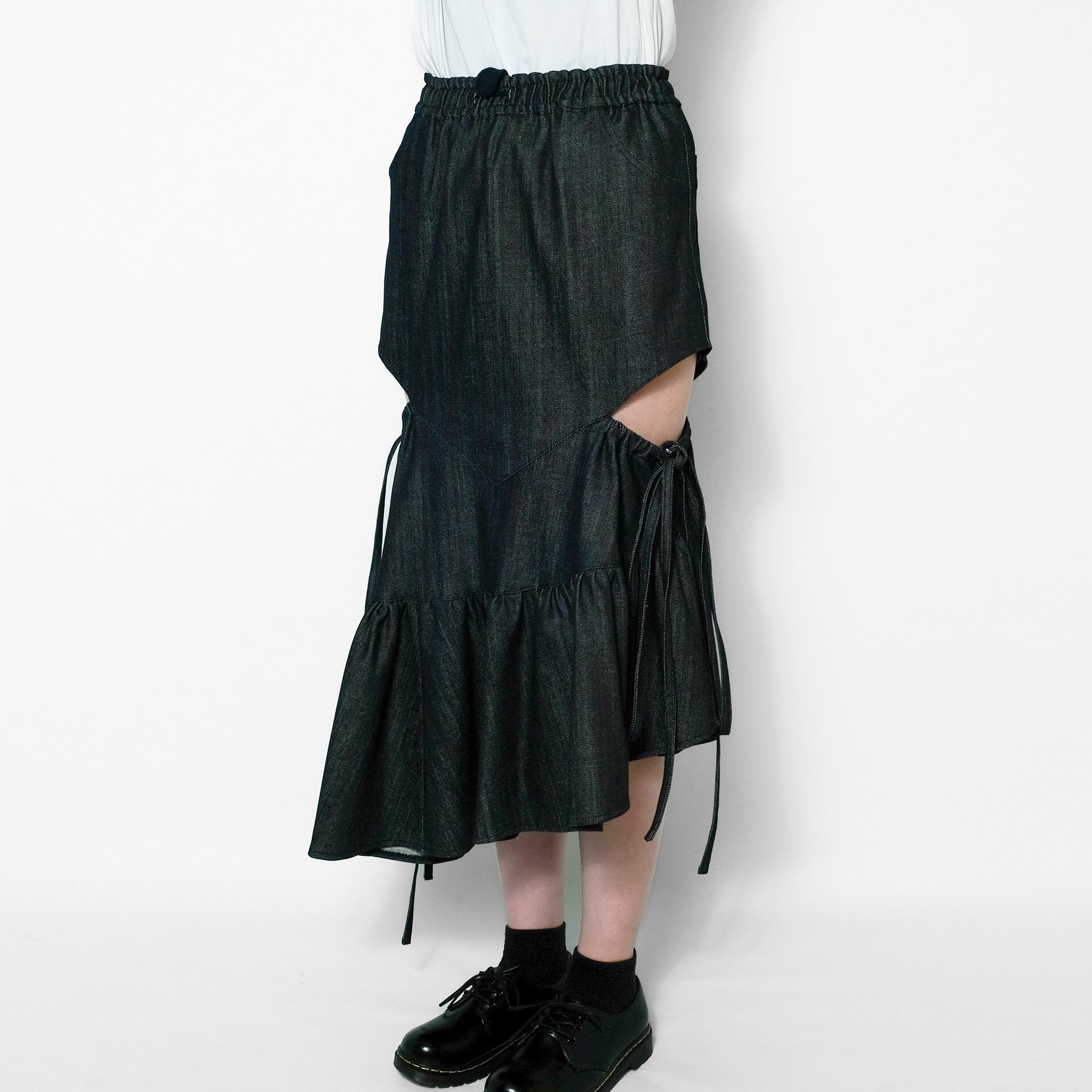 ラフさとエッジを兼ね備えた、個性派デニムスカート。