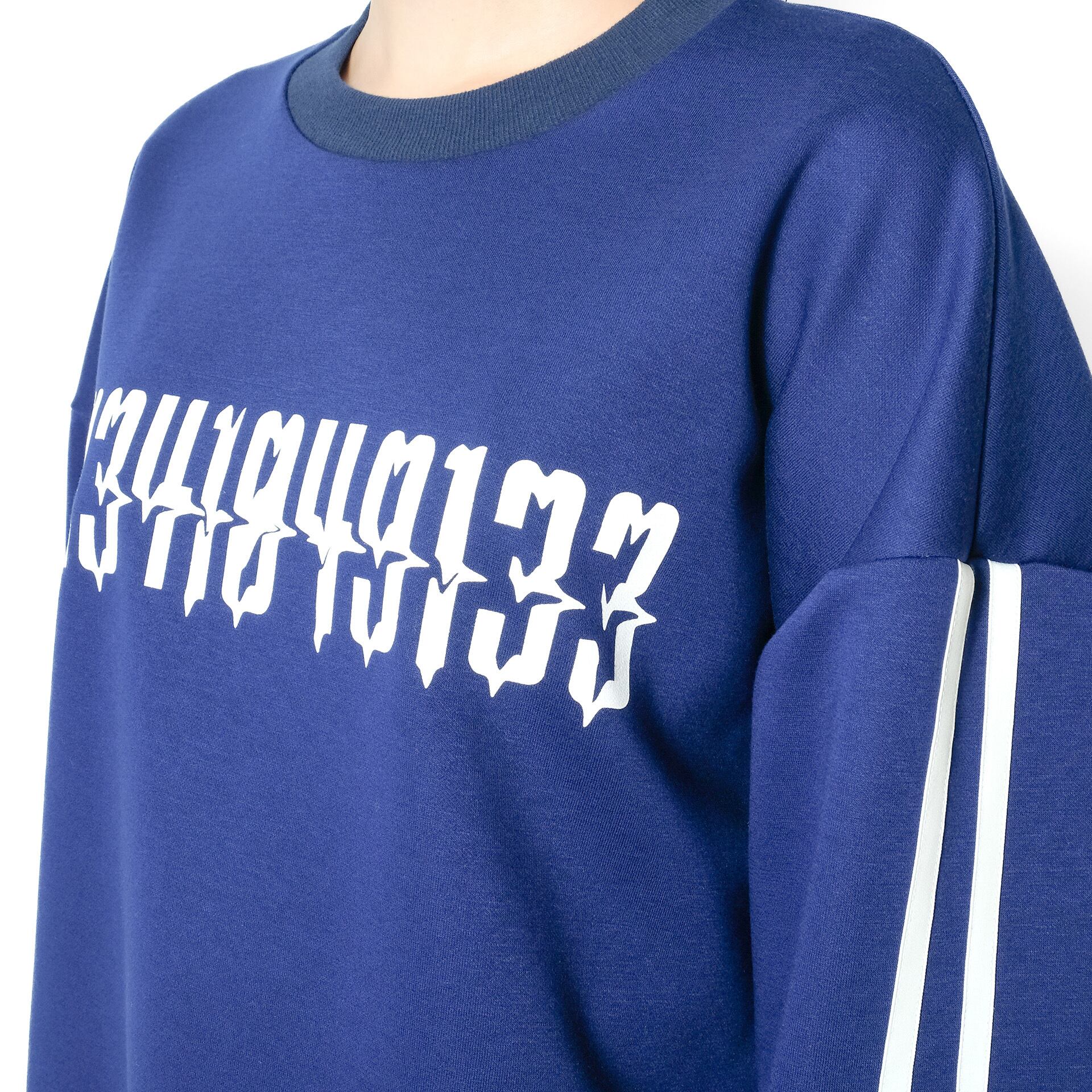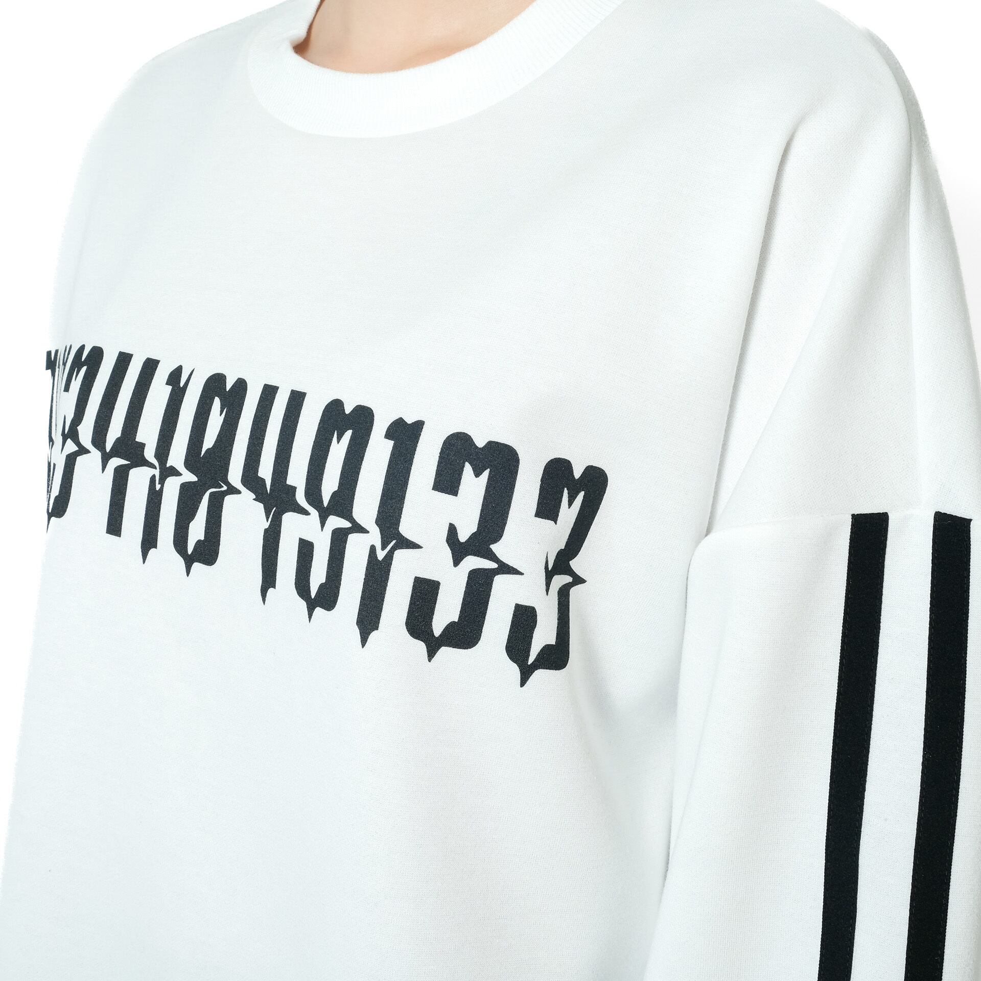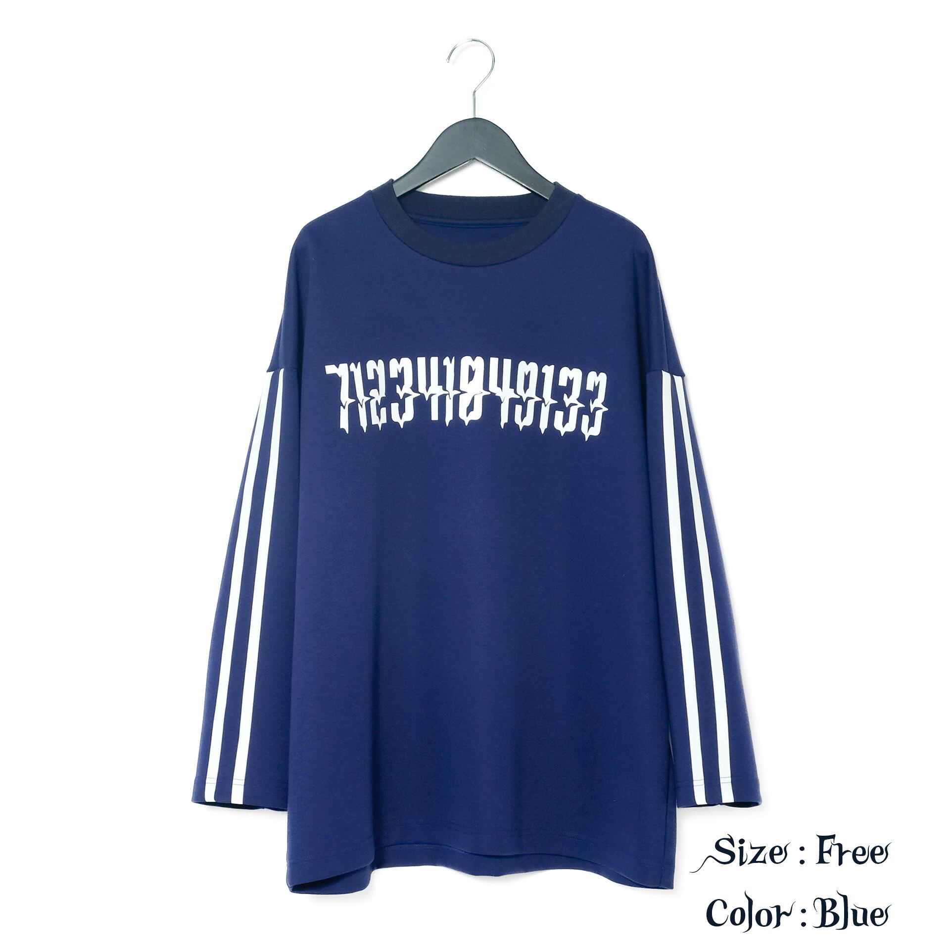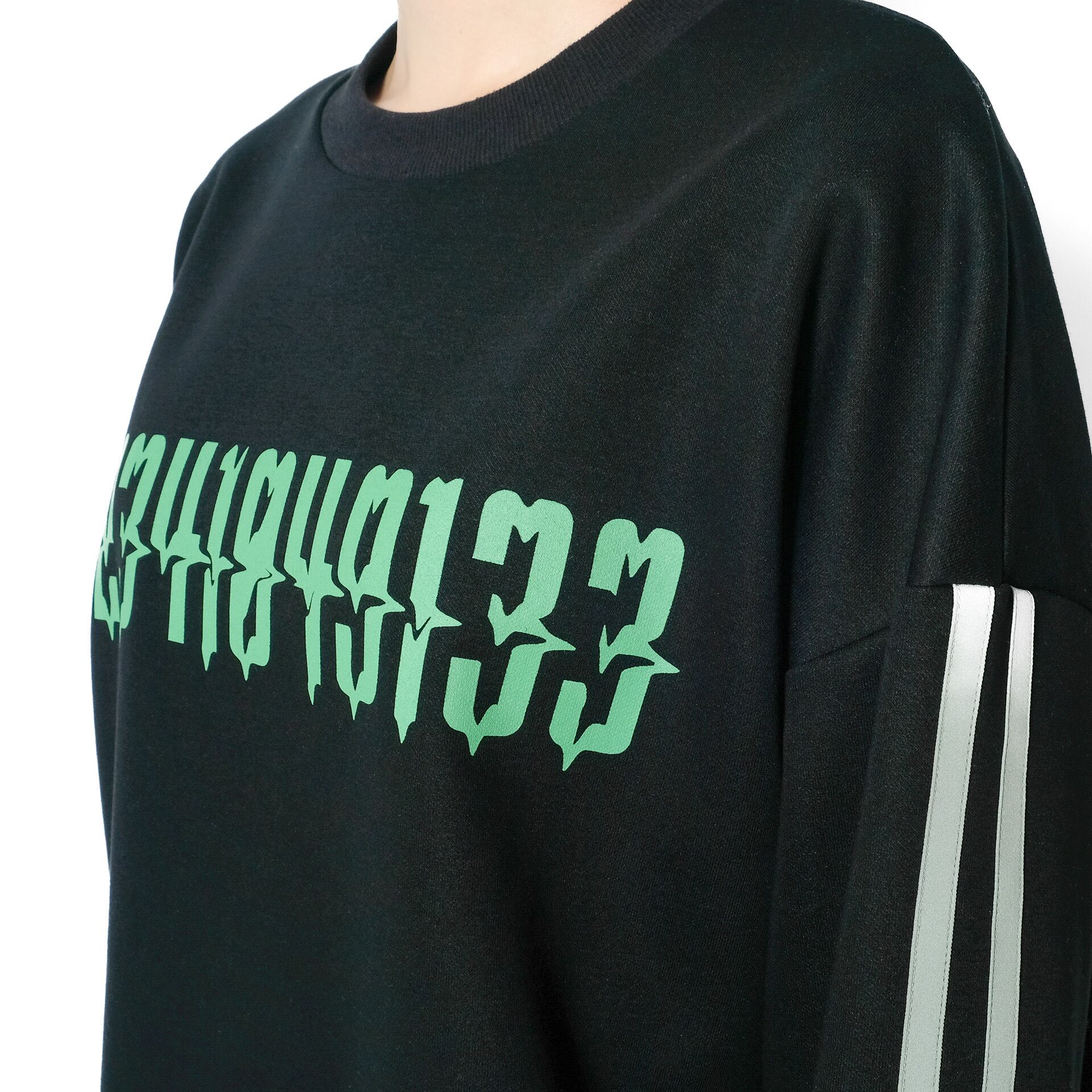 袖部分の配色ラインと12桁の数字プリントがアクセントになり、ユニフォームライクな印象を演出します。