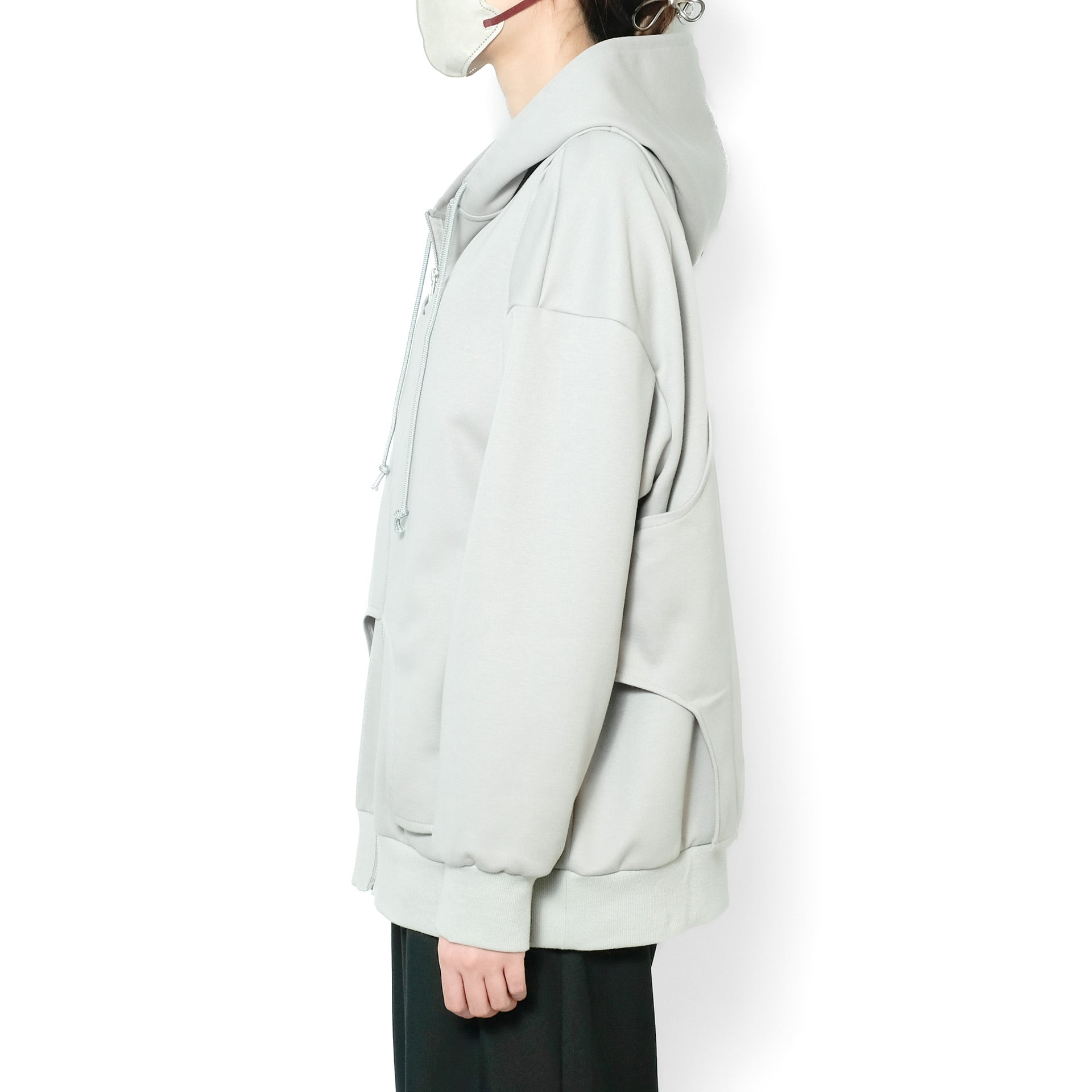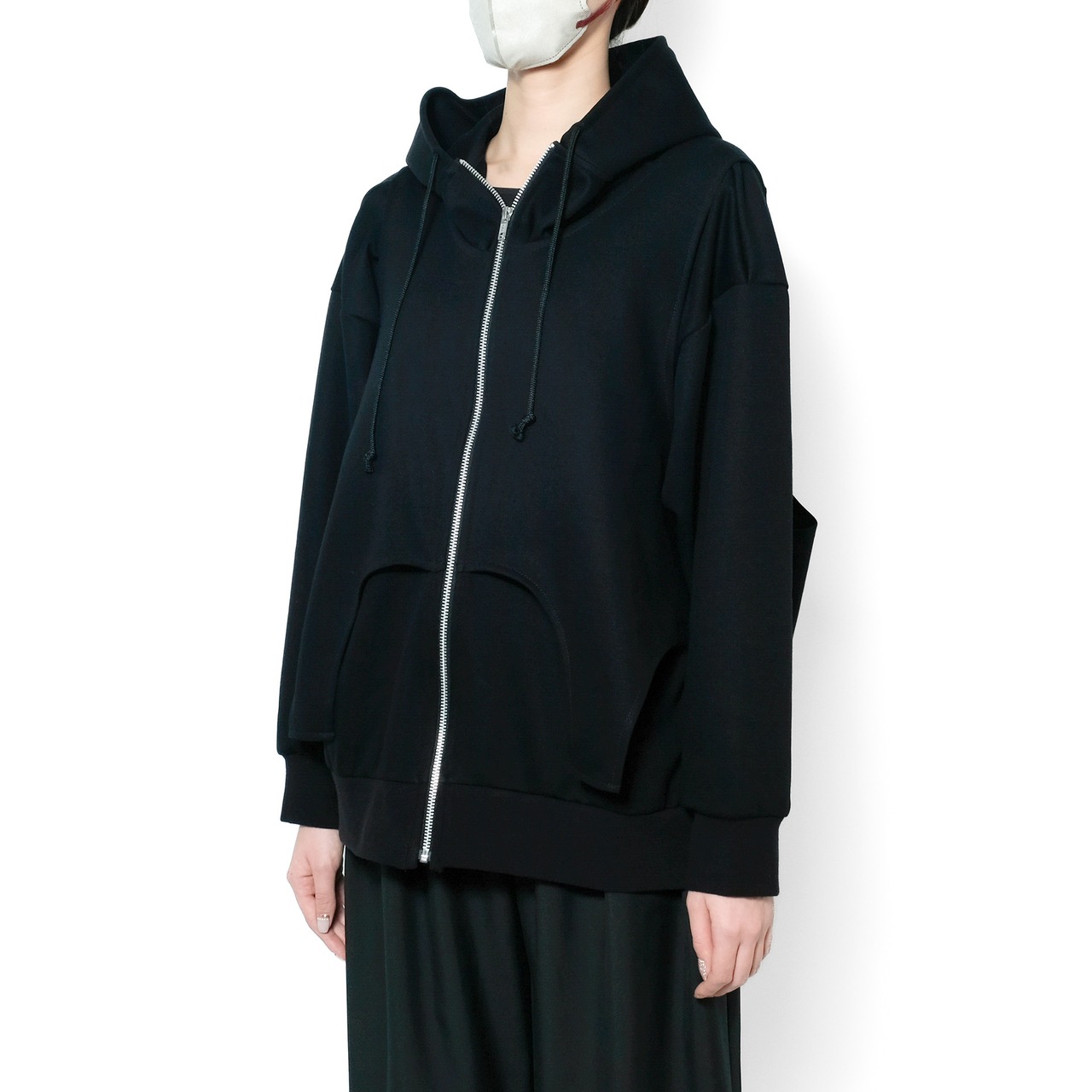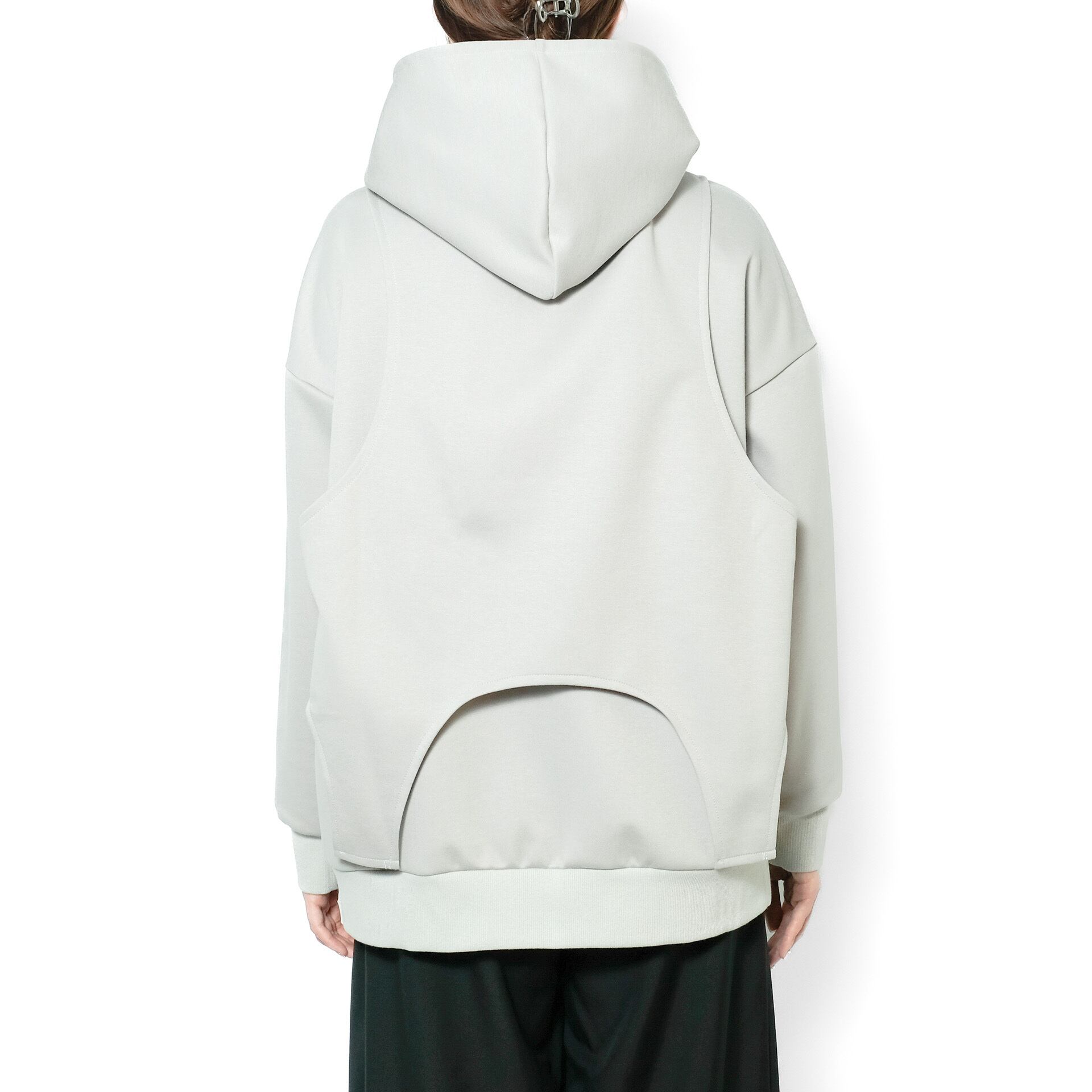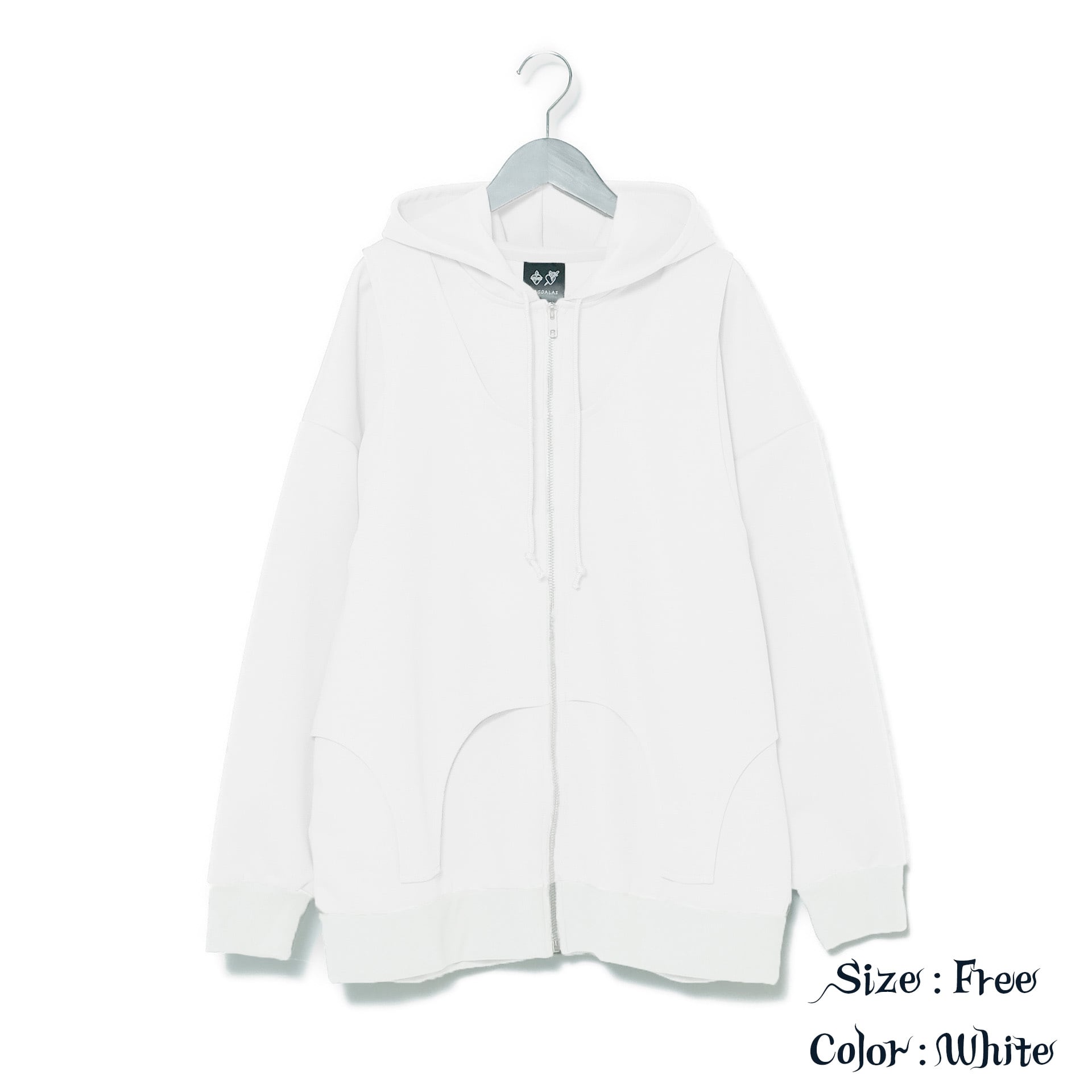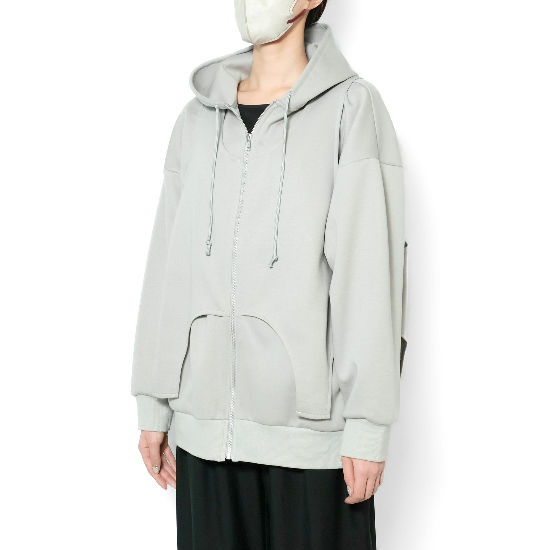軽やかなダンボールニットを使用したレイヤード風デザインのジップパーカーです。
